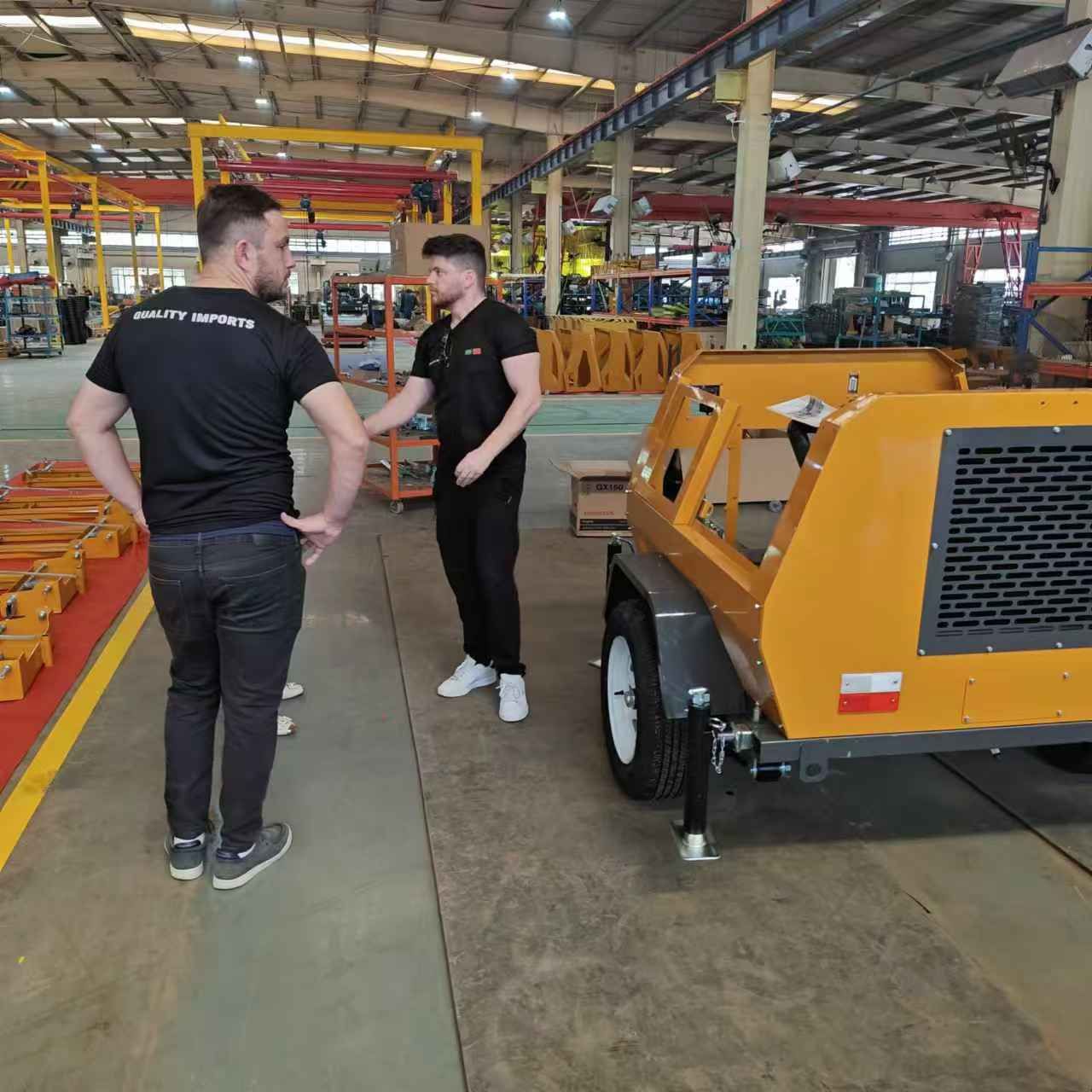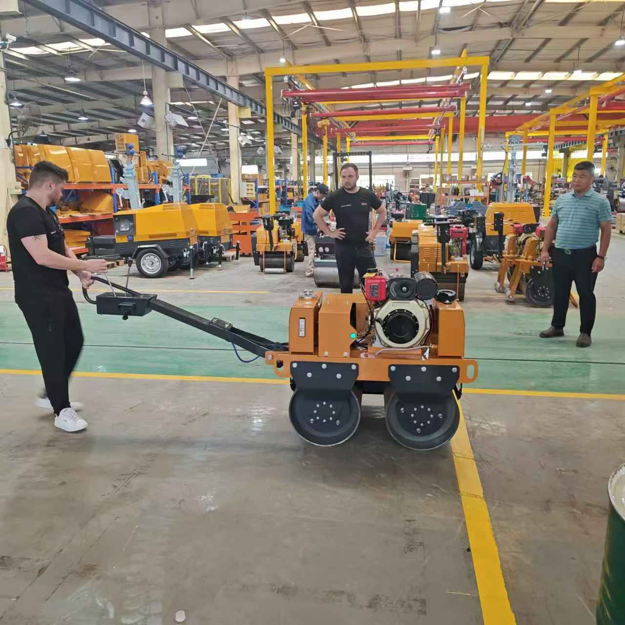 某國外客戶來我廠參觀考察,在工作人員的陪同下,參觀了生產(chǎn)車間與產(chǎn)品展廳,對我廠生產(chǎn)的小型壓路機、移動照明車、平板夯等產(chǎn)品贊不絕口,詳細向業(yè)務(wù)人員了解各個型號的配置與參數(shù),達成合作意向