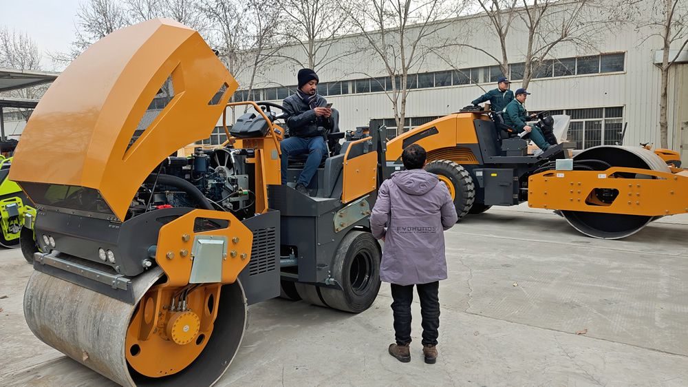 12月24日,某國外客戶2人來我廠參觀考察,在工作人員的陪同下,參觀了我廠生產(chǎn)車間與展廳并試駕小型壓路機,詳細(xì)向業(yè)務(wù)人員了解各個型號的配置與參數(shù),對我廠生產(chǎn)的壓路機、移動照明車,滑移裝載機等產(chǎn)品表現(xiàn)出濃厚興趣,初步達成合作意向